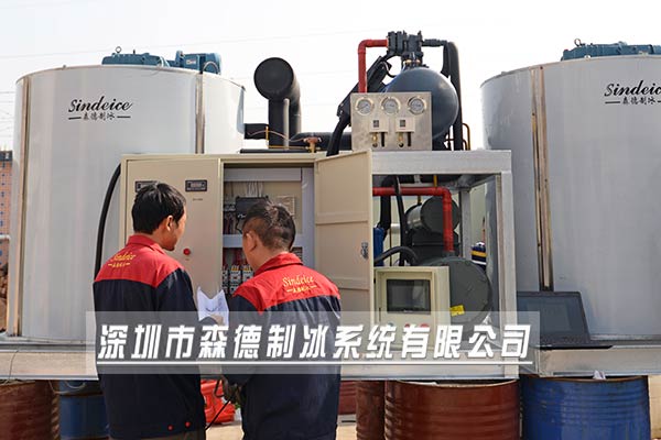 片冰機采用PLC可編程控制系統(tǒng),對設(shè)備可能出現(xiàn)的故障自動停機,以保護設(shè)備安全穩(wěn)定運行。森德片冰機電箱有4個報警燈,對應(yīng)4種故障狀態(tài):滿冰保護、缺水保護、過載保護、系統(tǒng)故障。