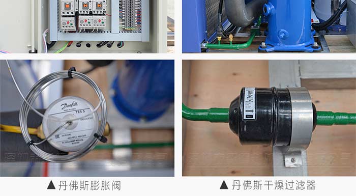 4.采用一線品牌制冷配件:德國比澤爾、丹麥丹佛斯、美國谷輪、臺灣漢鐘壓縮機、意大利萊富康等知名壓縮機,丹佛斯電磁閥、膨脹閥、干燥過濾器、美國愛默生膨脹閥等制冷配件,片冰機質(zhì)量可靠,故障率低,制冰效率高。